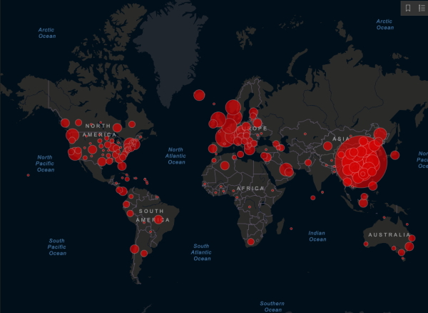 Le CSSE (The Center for Systems Science and Engineering) propose une carte en temps réel de la pandémie de COVID 19 à travers le monde. Issues de multiples sources scintifiques, elle permet de se rendre compte que nous vivons tous sur la même planète.